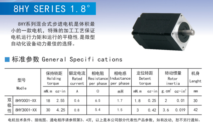 步進(jìn)電機(jī)8HY的標(biāo)準(zhǔn)參數(shù)